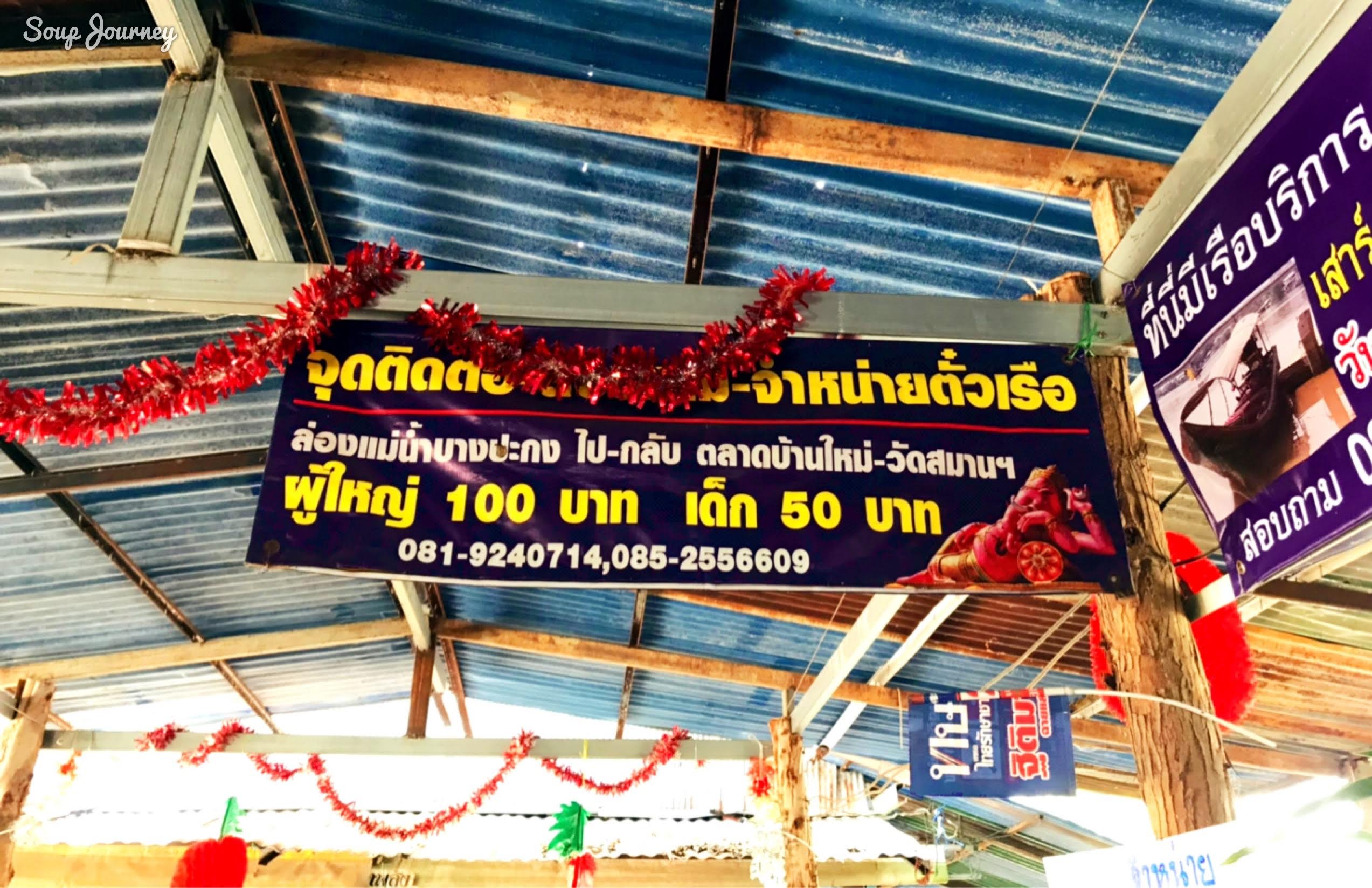 走入新屋市場的盡頭,便能看見前往粉紅象神廟的碼頭,而一旁的櫃檯即可買到船票,單程50泰銖,來回100泰銖,且為週休限定。