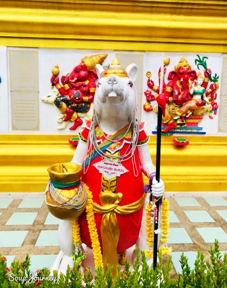在粉紅象神下方有兩位鼠神,他們代表著象神的座騎, 也是使者,所以若是想向象神許願的話,就要透過這些鼠神來做傳達。當你在許願時,記得將鼠神的另一隻耳朵遮住,免得鼠神左耳聽了右耳出,這樣你的心願就無法傳達到象神那裡了。