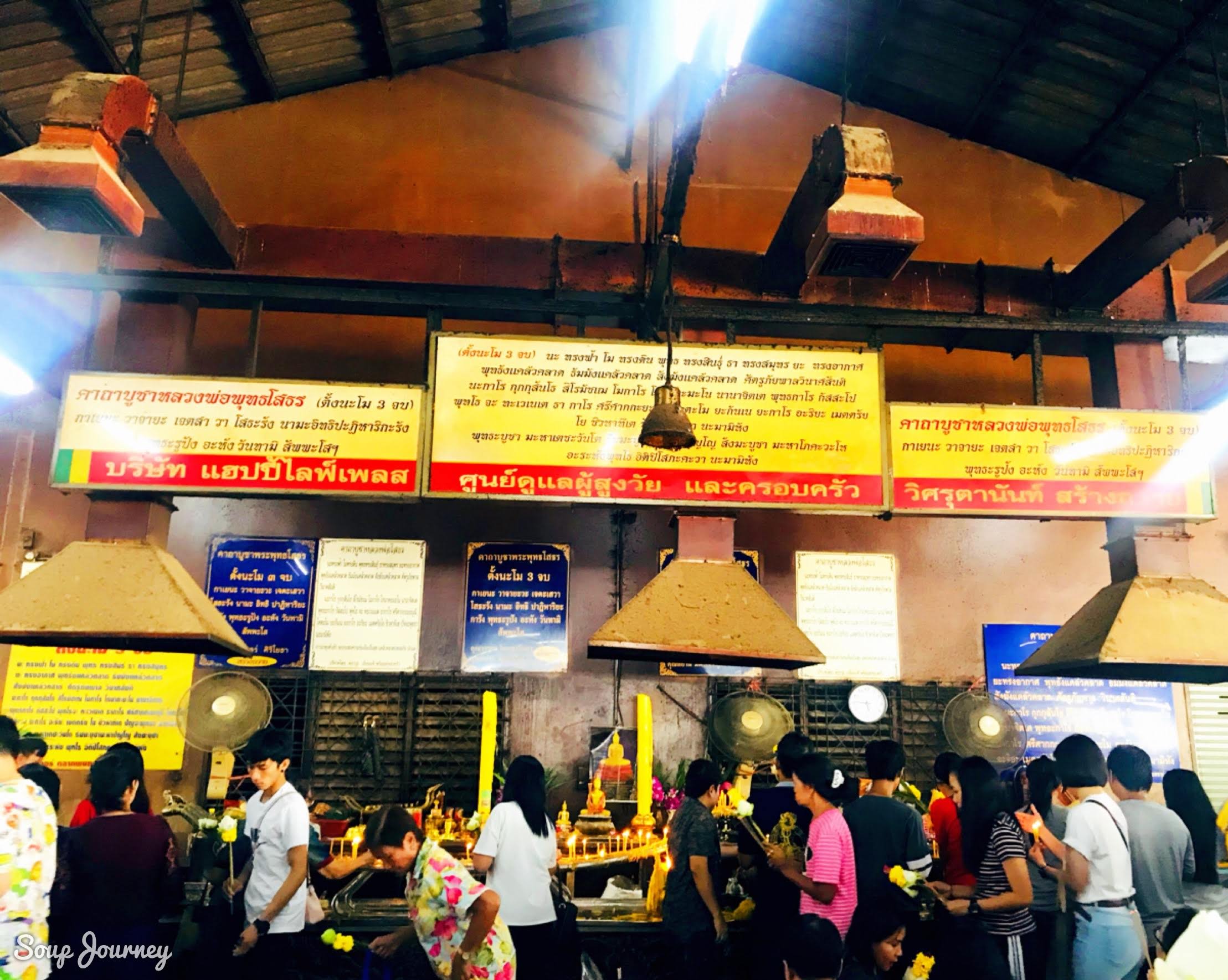 小提醒:在泰國的任何寺廟祭拜,都不得穿鞋入內,索通寺外頭有專人在看管鞋子,請將鞋放置於鞋架上後向工作人員索取號碼牌再進入寺廟;另外在新寺內是以鮮花做祭拜的,寺廟入口處可以取得鮮花,費用依照個人心意投置於一旁的功德箱內即可。